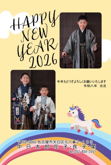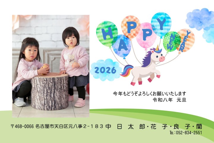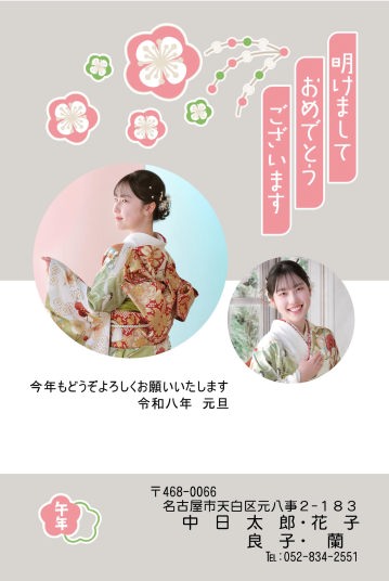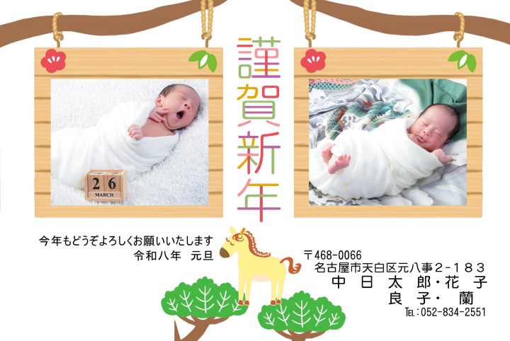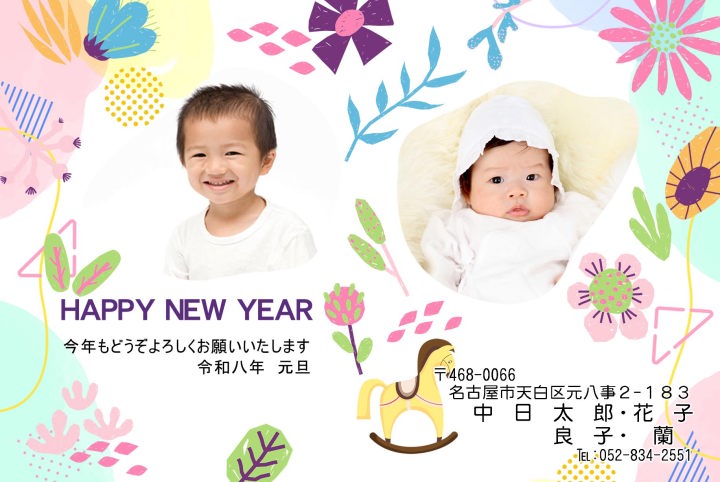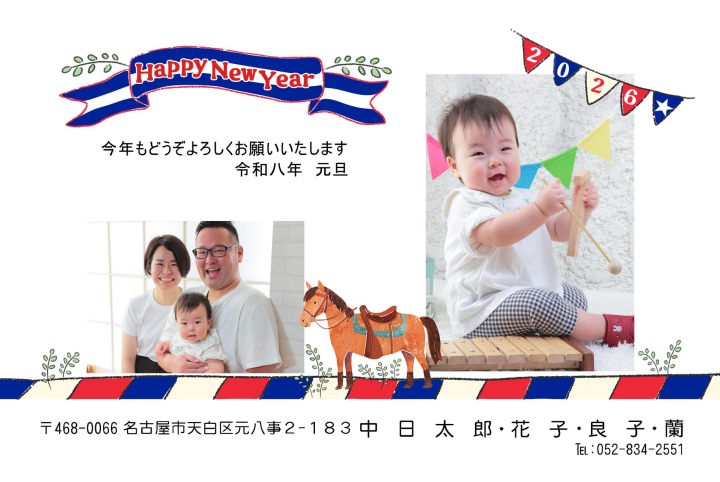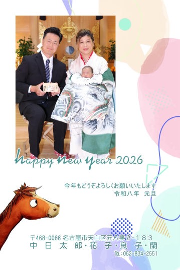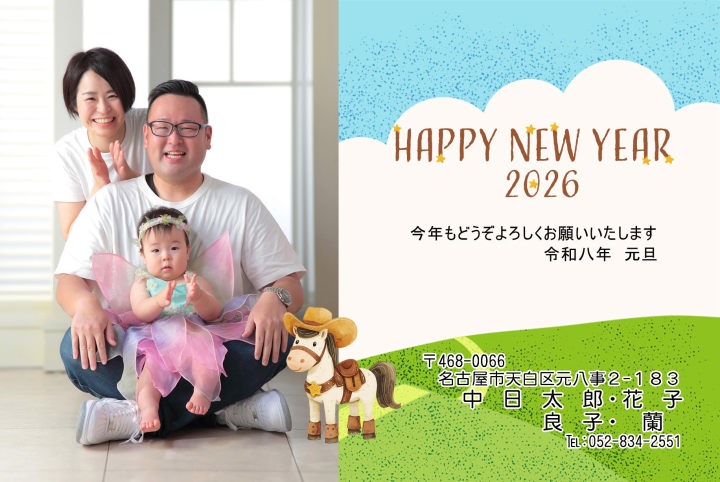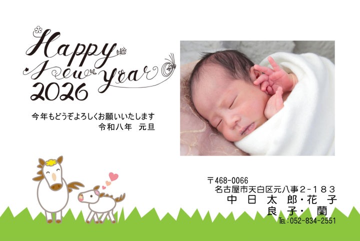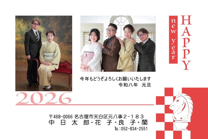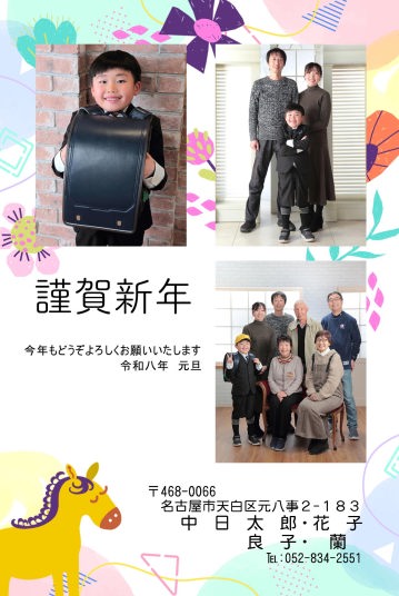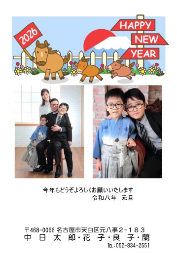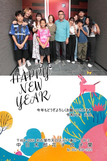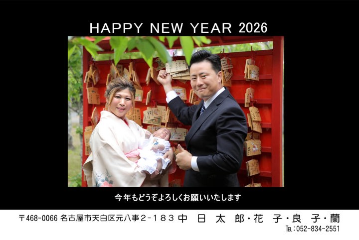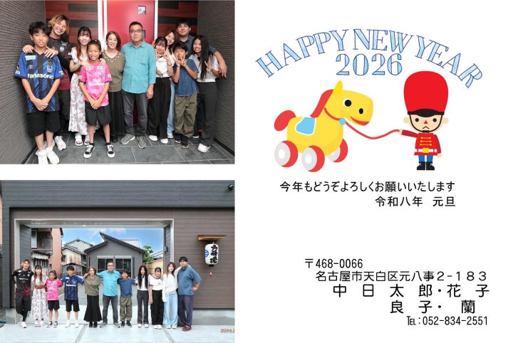 | ⑨ | 昨年新しい家族が誕生し にぎやかなお正月を迎えています 今年もよろしくお願いいたします 令和8年元旦 |