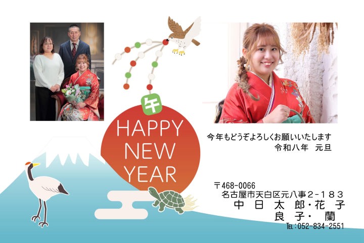 | ① | 今年もどうぞよろしくお願いいたします 令和8年元旦 |