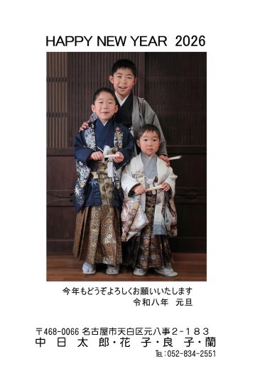 | ② | 旧年中はいろいろとお世話になりました 本年もよろしくお願い申し上げます 令和8年元旦 |